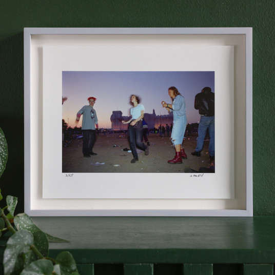 Annette Hauschild Aus der Serie "Verhüllter Reichstag – Die letzte Nacht, Berlin 1995“ II, 1995 / 2025 Material Archival Pigment Print Production Method Copyright für den verhüllten Reichstag: Christo und Jeanne-Claude, Verhüllter Reichstag, Berlin, 1971-1995 © Christo and Jeanne-Claude Foundation / VG Bild-Kunst, Bonn, 2025 Edition Size 25 Measurement Blattmaß 24 x 30 cm Auflage 25 + 3 AP signiert und nummeriert Details about the frame Handgefertigter hellgrauer Ahorn-Holzrahmen, ca. 29,2 x 35,2 cm, inkl. Distanzleiste, inkl. Museumsglas und rückseitiger Aufhängung The new and affordable way to buy contemporary art Strictly limited and signed art editions Limited stock From emerging talents to today’s most sought-after artists Easy and free sign-up to shop our weekly deals SIGN UP NOW Already have an account? Über die Edition Wer in den 90ern in Berlin lebte, hat diesen Moment nicht vergessen: Der von Christo & Jeanne-Claude glitzernd verhüllte Reichstag, die Menschenmassen davor. Auch Annette Hauschild war dabei: Als junge Berliner Fotografin hatte sie gerade ihre Ausbildung abgeschlossen und fotografierte von der Demo bis zur Partyszene alles, ob sie einen Auftrag hatte oder nicht. So kam es zu dem Glücksfall dieser "Verhüllter Reichstag - Die Letzte Nacht" betitelten Serie: „Ich habe die letzte Nacht fotografiert, als die Menschen dageblieben sind, um zu warten, bis am nächsten Morgen die Arbeiter kamen und ihn wieder enthüllt haben.“ Entstanden sind drei Bilder einer unvergleichlichen Stadt im Moment des Aufbruchs: Bewusst verwischt porträtiert Hauschild die Nachtschwärmer vor dem leuchtenden ikonischen Gebäude, beobachtet sie beim Tanzen oder Picknicken und dokumentiert mit dem ihr eigenen Pathos die Momente, in denen private und politische Utopie zusammenfielen ‒ ein Geschenk! Über die Künstlerin Annette Hauschild, 1969 in Gießen geboren, zog im Alter von 19 Jahren nach Berlin und wurde in den wilden Nachwendejahren Fotografin: Sie studierte im Lette-Verein und besuchte Arno Fischers legendäre Meisterklasse am Schiffbauerdamm. Seit 1996 ist sie Mitglied der renommierten Fotoagentur Ostkreuz, die sich 1990 gründete, als eine Gruppe von Fotograf*innen aus der ehemaligen DDR. Hauschild war federführend an der im Januar 2025 zuende gegangenen Ausstellung "Träum weiter – Berlin, die 90er" beteiligt. Die Ausstellung bei C/O Berlin gehörte zu den meistbesuchten der Geschichte des Hauses und präsentierte eindrucksvoll in rund 200 Arbeiten Berlin als Stadt im Wandel – beginnend mit dem Fall der Mauer über die lebendige Technoszene bis hin zu den sozialen und wirtschaftlichen Veränderungen Berlins als neue Hauptstadt. Latest Exhibitions (Selection) 2024/25 Träum Weiter! – Berlin, die 90er. c/o Berlin Gruppenausstellung 2021 MISS YOU. Künstler*innen im Lockdown. Open air, dezentrale Orte. Berlin 2020 KONTINENT – auf der Suche nach Europa. Akademie der Künste, Berlin. Gruppenausstellung 2012 Über Grenzen. Haus der Kulturen der Welt, Gruppenausstellung OSTKREUZ Links of Interest (Selection) Annette Hauschild bei Ostkreuz Gruppenaustellung: Träum Weiter — Berlin, die 90er, C/O Berlin Interview - Kuratorin Annette Hauschild: "Träum weiter", radioeins Discover More Art Annette Hauschild Aus der Serie "Verhüllter Reichstag – Die letzte Nacht, Berlin 1995“ I, 1995 / 2025 Annette Hauschild Aus der Serie "Verhüllter Reichstag – Die letzte Nacht, Berlin 1995“ III, 1995 / 2025 Annette Hauschild SET Aus der Serie "Verhüllter Reichstag – Die letzte Nacht, Berlin 1995“ I + II + III, 1995 / 2025 Mirko Reisser (DAIM) DAIM - straight up (The black spraypaint edition), 2025 Thomas Ruff Untitled#1, 2022/25
