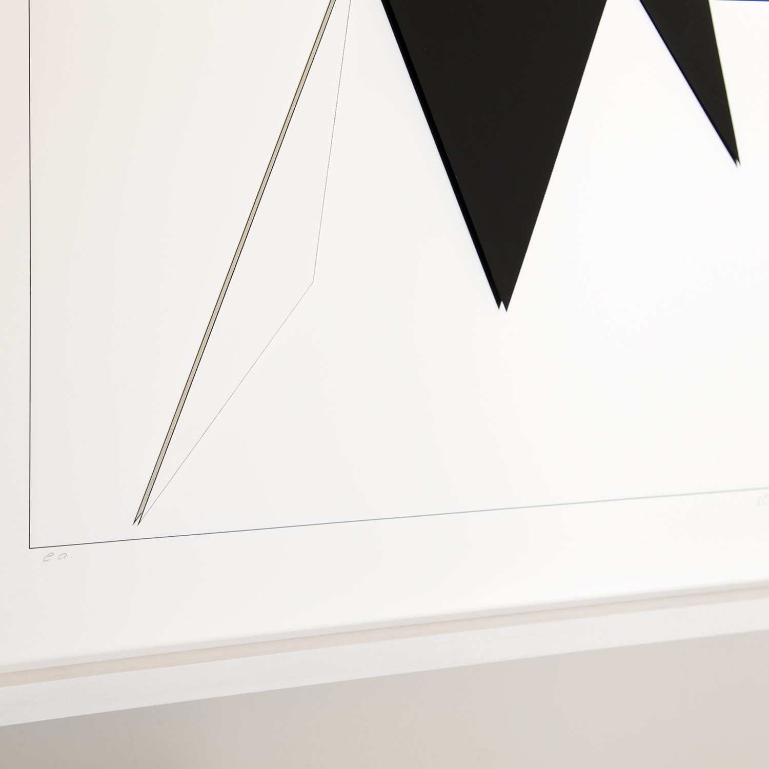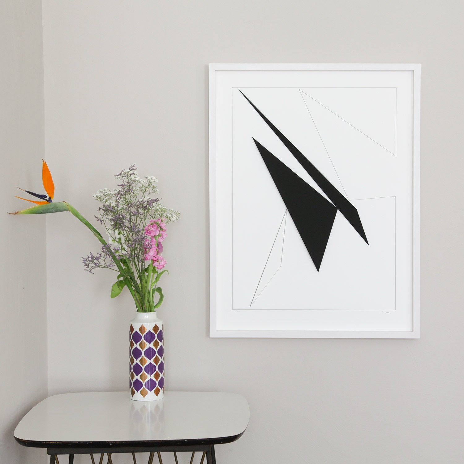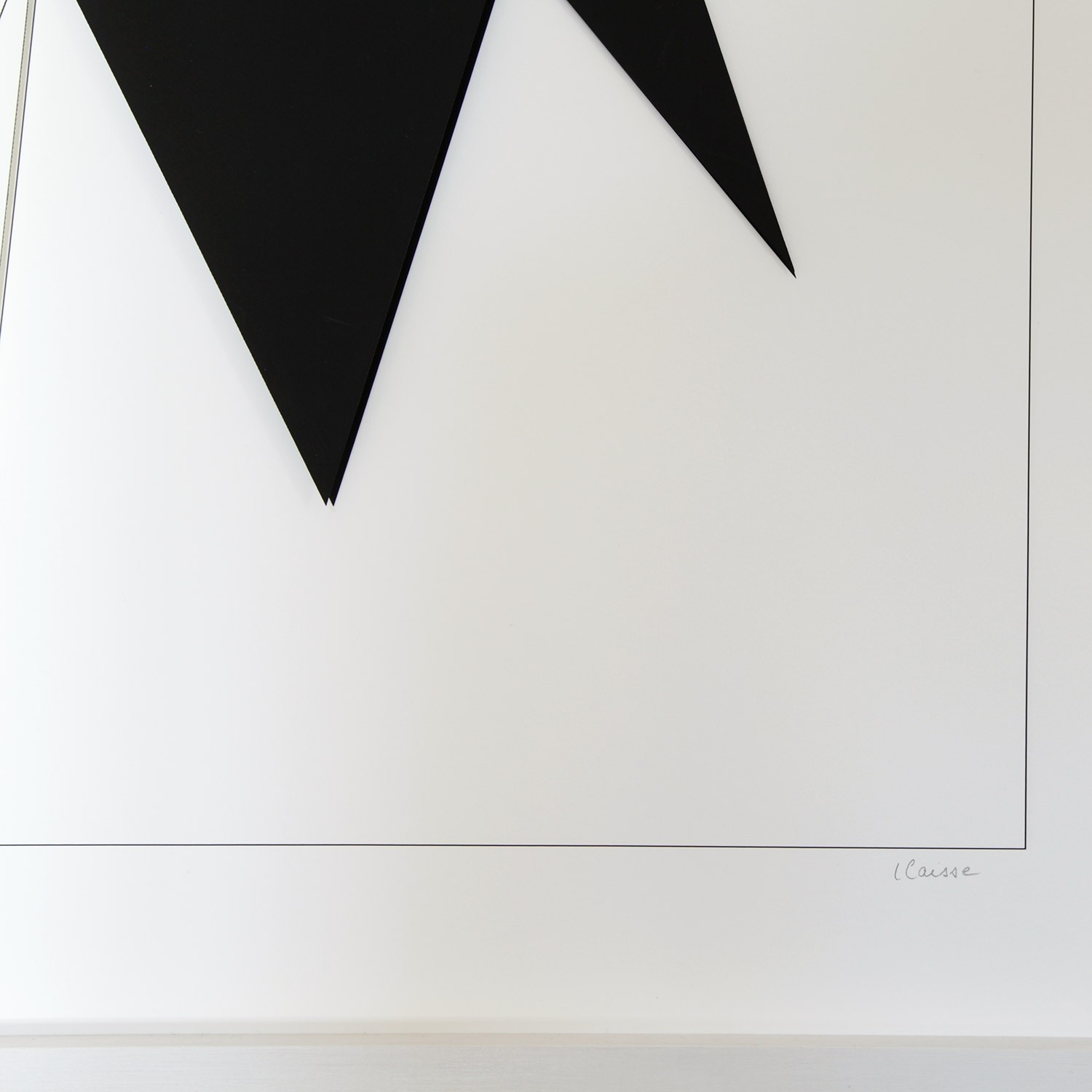 Geneviève Claisse Composition géometrique 2, 2015 Material 3D-Konstruktion Edition Size 30 Measurement 83 x 64 cm handsigniert und nummeriert gekennzeichnet mit e.a. (epreuve artiste) und signiert unten rechts Details about the frame Handgefertigter weiß lasierter Ahorn-Holzrahmen, inkl. Distanzleiste und Normalglas, Außenmaße ca. 79,6 x 61,0 cm. Inkl. Rückseitiger Aufhängung, staubdicht verschlossen. The new and affordable way to buy contemporary art Strictly limited and signed art editions Limited stock From emerging talents to today’s most sought-after artists Easy and free sign-up to shop our weekly deals SIGN UP NOW Already have an account? Über die Edition„Composition géometrique“ (2016) zeigt weiße dreieckige Flächen auf tiefschwarzem Grund. Die Dreiecke scheinen zu tanzen, bauen sich Spitze an Spitze übereinander auf. Es ist nicht vorstellbar, dass sich ein solches Gebilde als dreidimensionale Komposition im Raum selbst hielte. Diese Magie der Bewegung ist allein in einem Bild oder, wie in dieser Ausführung, in einem Relief möglich. Über die Künstlerin Die Französin Geneviève Claisse (*1935) starb in 2018 im Alter von 83 Jahren. Sie war die Grande Dame der geometrischen Abstraktion. Claisse studierte an der École des Beaux-Arts in Paris. Ihre erste Ausstellung hatte sie 1960, in der Folge wurde ihr Œuvre weltweit in Museen und Galerien gezeigt. Herausragend ist die Stabilität im Schaffen der Malerin, auf ihr Werk ist Verlass. Stets herrscht ein Ungleichgewicht der Formen, die auf einen makellosen Farbauftrag treffen. Bei Claisse wird die Farbfläche lebendig, die Künstlerin war immer auf der Suche nach Bewegung. Insbesondere kommt diese Suche in ihren dreidimensionalen Arbeiten zum Ausdruck. Latest Exhibitions (Selection) 2012, Galerie Denise René, Paris 2010, Sommer & Kohl, Berlin 2008, Frauenmuseum, Bonn 2005, Arithmeum, Bonn 2001, Centre Georges Pompidou, Paris 2001, Royal Academy of Arts, London 2000, Museum of Art, Ibataki 2000, Marugame Genichiro-Inokuma Museum of Contemporary Art, Kagawa Links of Interest (Selection) Videodokumentation über die Arbeit von Geneviève Claisse Werke von Geneviève Claisse bei artnet Werke von Geneviève Claisse bei Galerie Fleury, Paris Discover More Art Bianca Kennedy Serie "Portraits of Taking a Bath in Movies": Enter the Void, 2021 Bianca Kennedy Serie "Portraits of Taking a Bath in Movies": Killing Eve, 2021 Bianca Kennedy Serie "Portraits of Taking a Bath in Movies": Knocked up, 2019