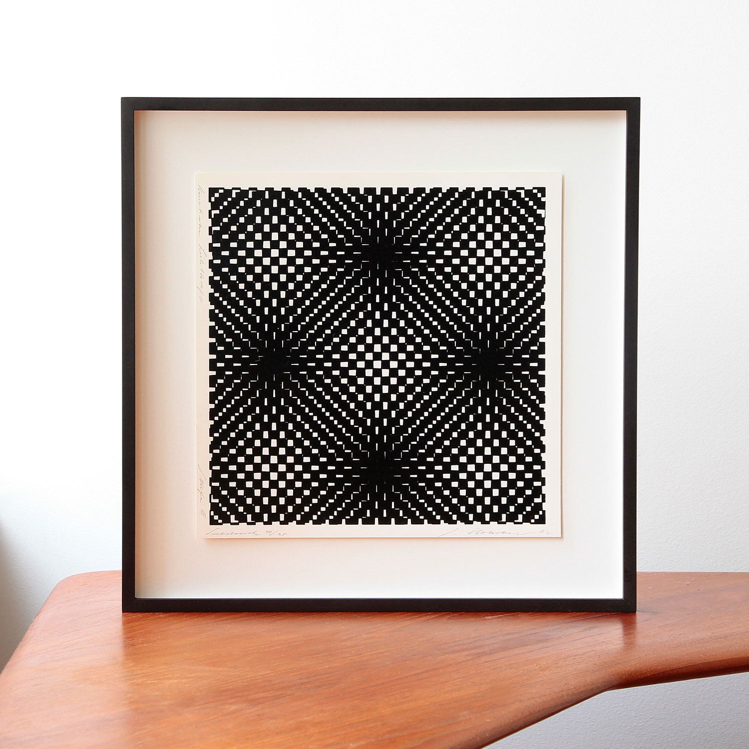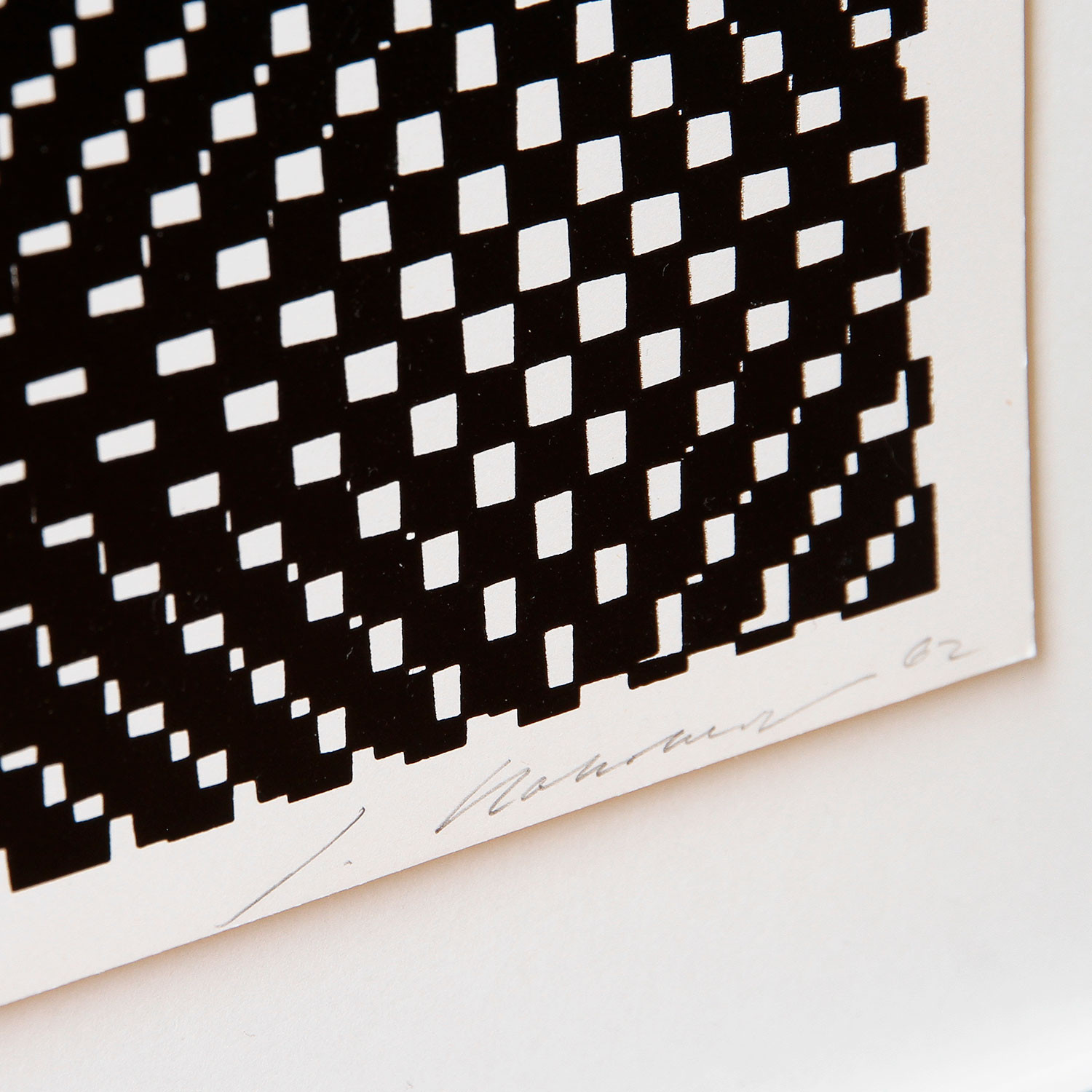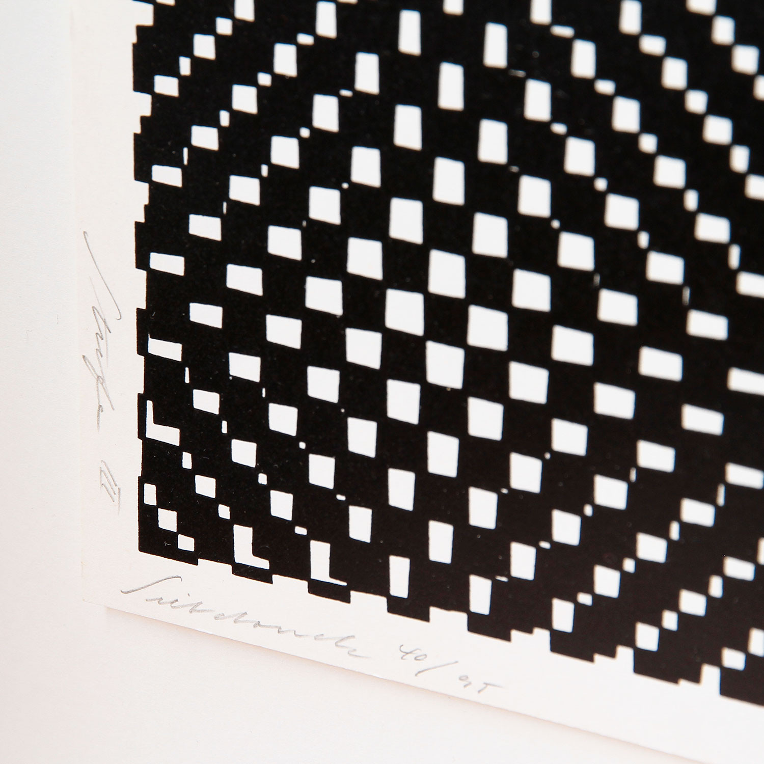 Jürgen Rohrberg Kinetische Lichtkraft, 1962/1977 Material Siebdruck auf Karton Edition Size 230 Measurement 28 x 28 cm Auflage 230 Auf der Vorderseite mit Bleistift signiert, nummeriert und datiert Details about the frame Handgefertigter Nussbaum-Holzrahmen, mit 8mm Distanzleiste auf braunem Farbpapier, Außenmaße ca. 39,2 x 39,2 cm, inkl. Museumsglas und rückseitiger Aufhängung The new and affordable way to buy contemporary art Strictly limited and signed art editions Limited stock From emerging talents to today’s most sought-after artists Easy and free sign-up to shop our weekly deals SIGN UP NOW Already have an account? Über die Künstlerin und die Edition Links of Interest (Selection) Verena Loewensberg in der Sammlung im Museum Haus Konstruktiv, Zürich Verena Loewensberg bei The Mayor Gallery, London
