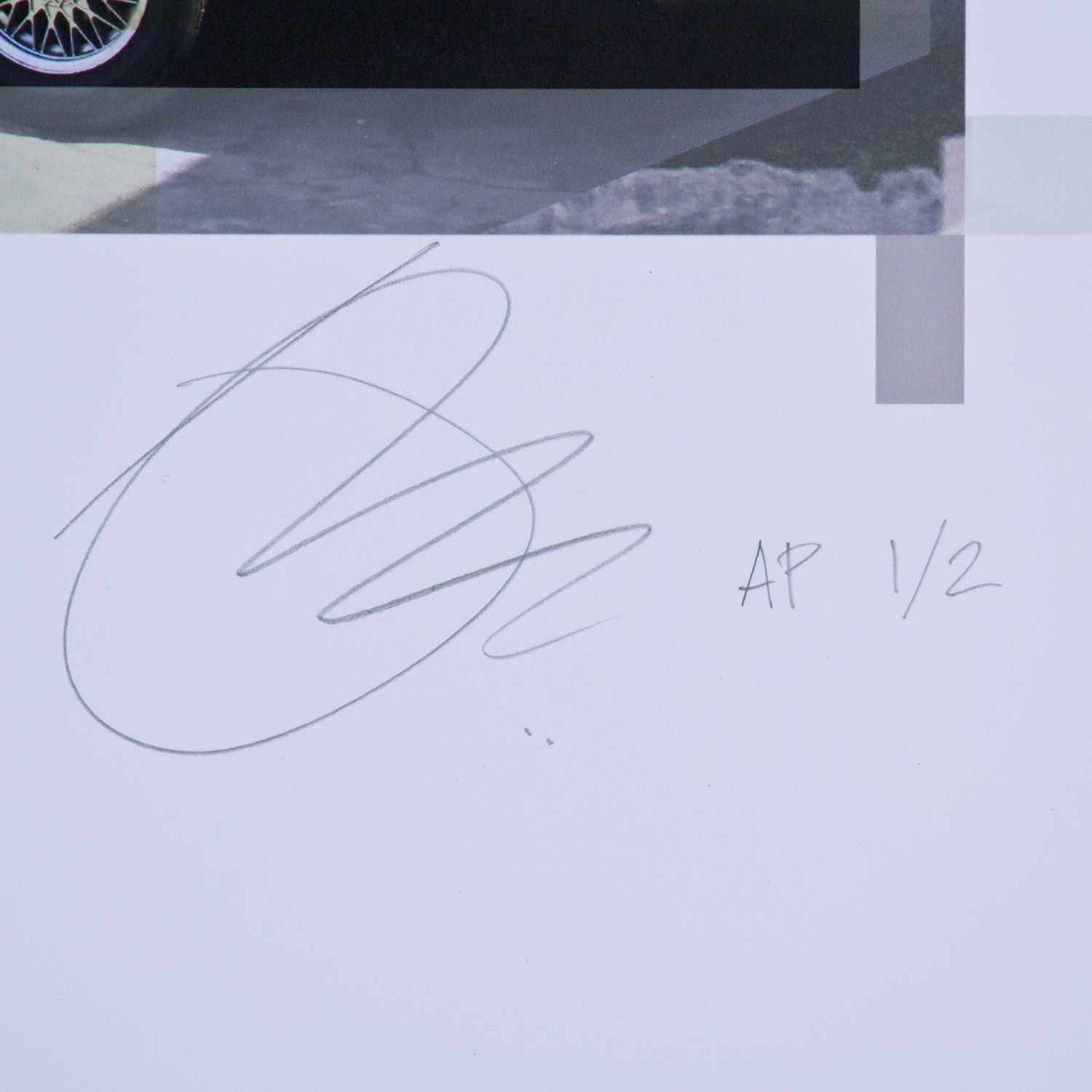 Created exclusively for artflash, Measures recently completed an edition based on one of his earlier collages, "My LA 2013": A black sedan in the foreground instantly catches the viewer's eye: it seems to be turning into the urban jungle, past barred storefronts, pedestrians, parked cars, and surrounded by a jumble of wires and telephone poles. Opaque and transparent blocks of color superimpose each other and intersect the other pictorial elements. The image is developed layer by layer, as if - in a bizarre reverse process - Measures were dissecting piece by piece that, which generations of residents of "his" city over the years have altered, walled up, torn down or painted over. Measures' cityscapes contain something deeply human and natural, because his compositions give people space - space to breathe, to maneuver freely through city life despite all its demands and stimuli, and space to find one's place in this metropolis of 13 million inhabitants. At the same time, these images reflect the open and astonished gaze of the still-foreign artist, who moved to Los Angeles two decades ago from his small hometown in the north west of England in search of happiness.